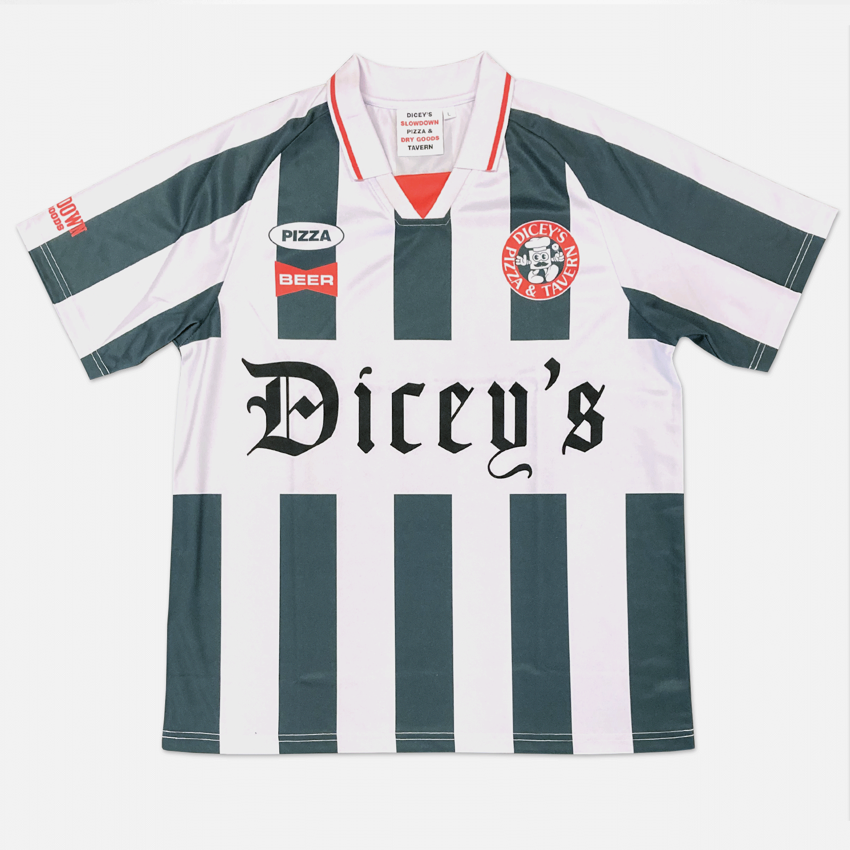 DICEY’S SHOP Dicey's Soccer Jersey $50.00 "PRAY FOR DICEY'S" T-Shirt $25.00 "HAULIN' ASS" Bumper Sticker $4.00 "HAULIN' ASS" T-Shirt $25.00 "PIZZA IS REAL" T-Shirt $25.00 Dicey's Gift Card from $25.00 "Alive & Well at Dicey's" T-Shirt $25.00 Sold out Quality Ingredients T-Shirt $25.00 Sold out "HAULIN' ASS" Trucker Hat $25.00 Sold out GUERILLA BIZKITS x DICEY'S T-Shirt $25.00 Sold out Circle Logo T-Shirt $25.00 Sold out